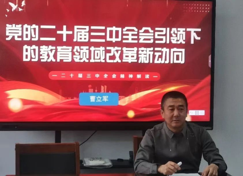 为深入贯彻学习党的二十届三中全会精神,坚定理想信念,加强思想引领,11月7日下午,公司党委书记曹立军主持讲授题为《党的二十届三中全会引领下的教育领域改革新动向》的专题党课, 全体党委委员、党支部书记参加会议。