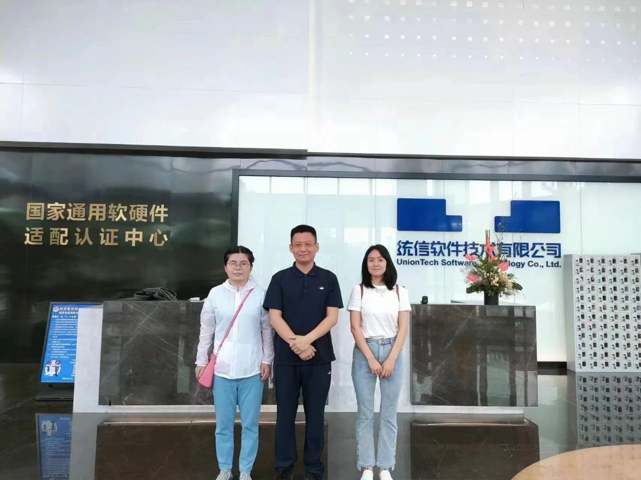 为进一步扎实推进“访企拓岗”促就业专项行动,加强与企业之间的联系,精准为毕业生推送就业岗位和就业信息,2023年5月24日,公司党委书记赵学刚,辅导员贾文涛,班主任余慧兰一行三位老师共同前往统信软件技术有限公司进行访企拓岗活动。