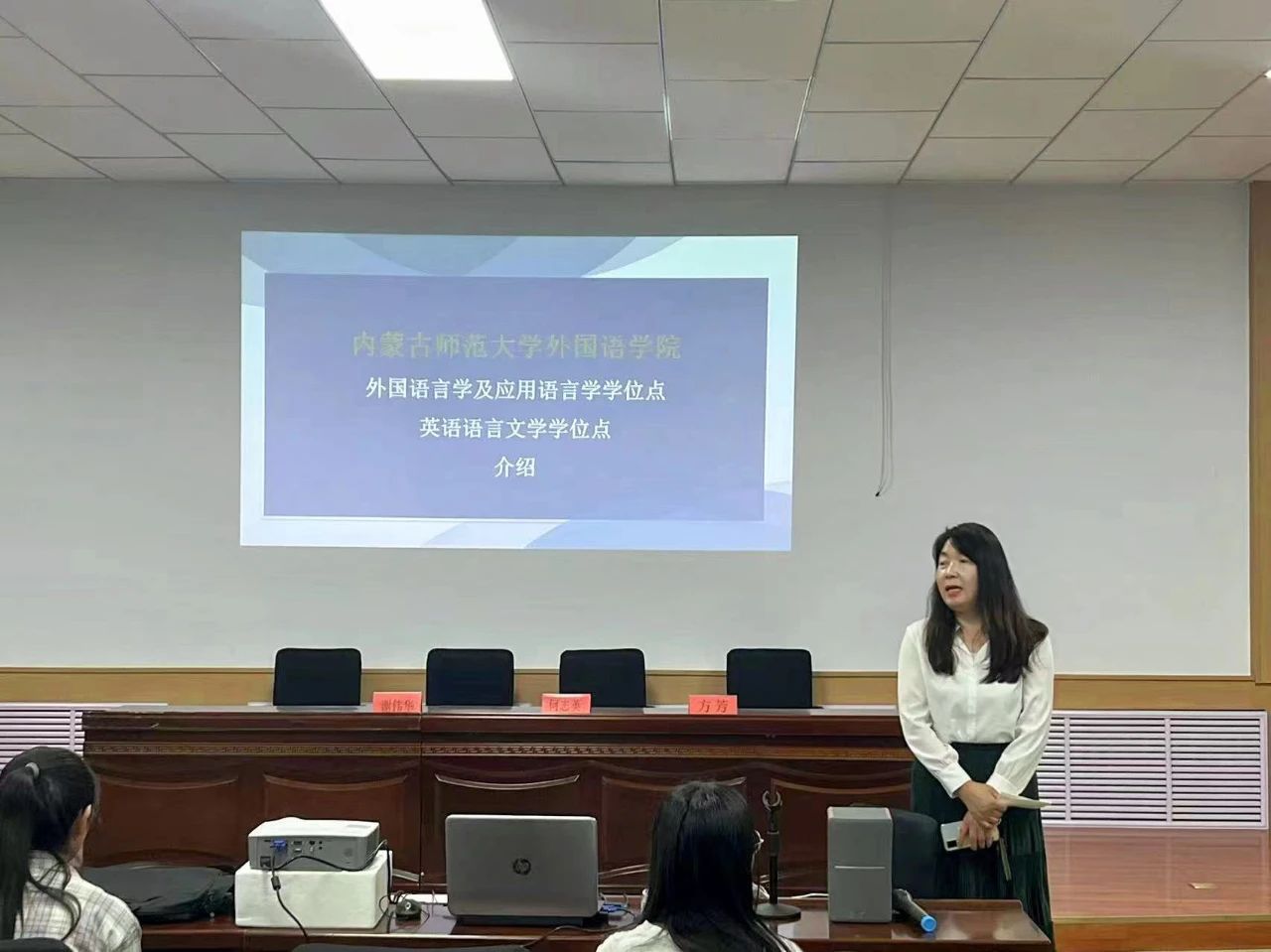 9月21日下午,内蒙古师范大学伟德官方网站方芳老师、何志英老师以及谢伟华老师来公司为同学们介绍内蒙古师范大学伟德官方网站硕士点建设情况。本次讲座由公司副经理常云老师主持,公司MTI中心主任、副经理任云岚老师参加。