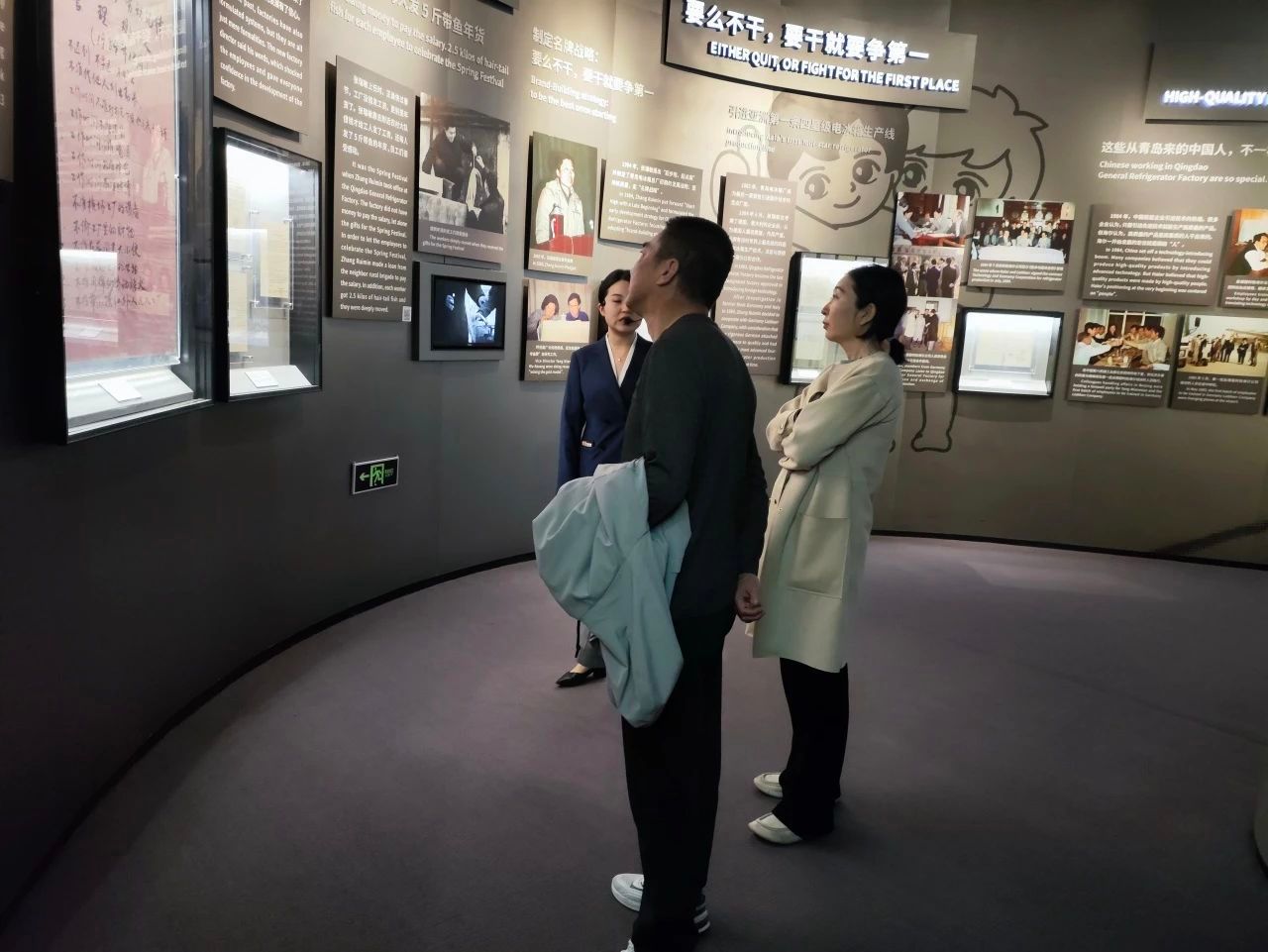 曹书记三人一行等人参观了卡奥斯生态展与海尔文化馆。卡奥斯作为全球首家引入用户全流程参与体验的工业互联网平台,已赋能医疗、物流、纺织、化工、能源等诸多行业,构建起一体两翼的商业模式并获得全球认可。在海尔文化馆,曹书记一行三人通过六个历史阶段系统了解了海尔集团的发展历史和海尔精神、海尔文化等内容,感受一代代海尔人传承的拼搏与求索精神。