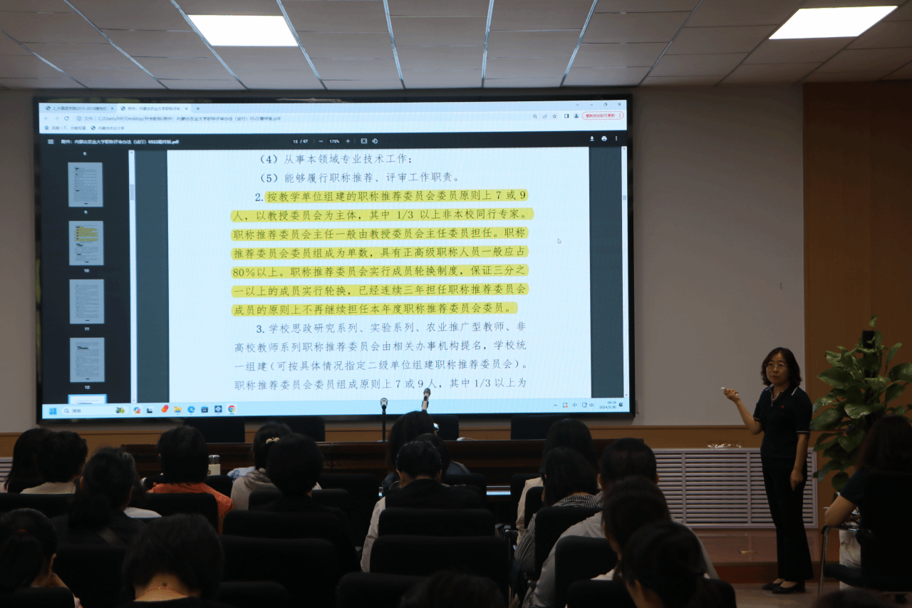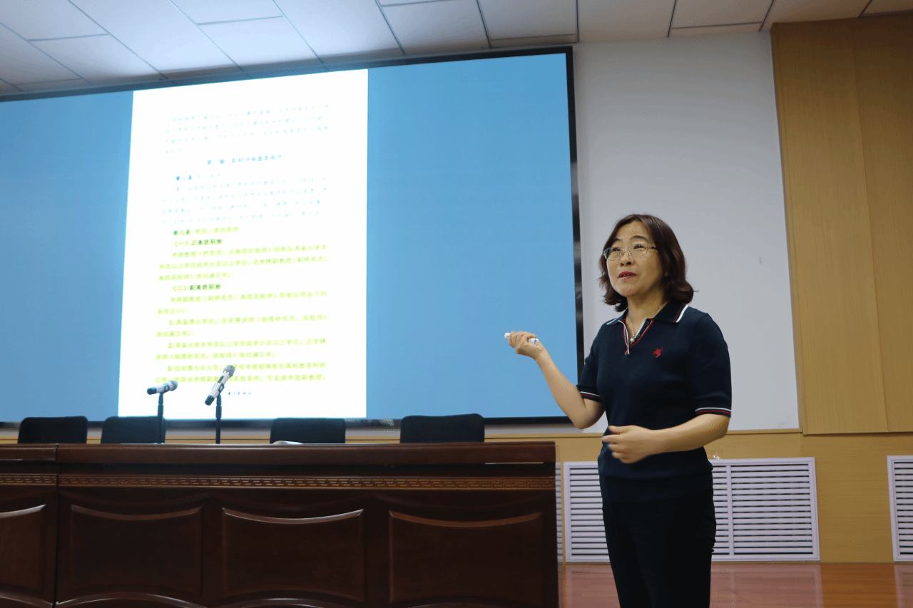 首先刘经理提出,在全院教职工的共同努力下,近几年来公司取得了显著的进步和可喜的成绩。同时也对在教学质量、员工管理等方面作出贡献的老师提出了表扬。接着,刘经理结合《伟德职称评审办法(试行)》,为老师们讲解了教师职称评审的最新要求,其中重点讲解了教授职称和副教授职称评审需要具备的条件。此外,刘经理还对岗位滚动晋升机制以及教学任务和综合评价条件做出了详细介绍,消除教师在职称评审和晋升方面存在的焦虑与疑虑,让教师能更加专心的投身于教育工作中。