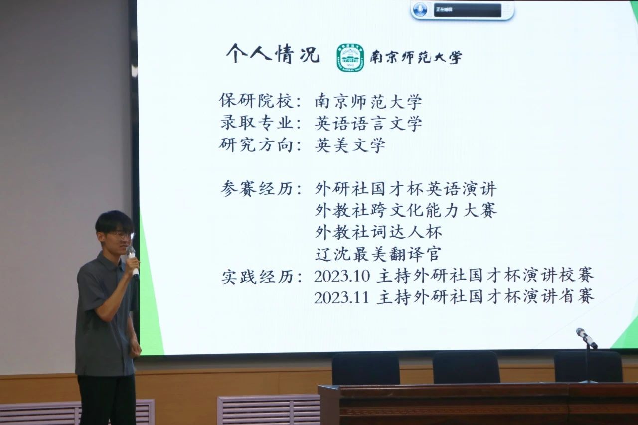 杜庆巍学长保研到了南京师范大学的英语语言文学专业,他也给大家分享了自己的保研经验。学长总结了以下几条经验:一、目标院校的选择很重要。要从院校头衔、地理位置、专业实力三个方面确认择校标准。二、找到最适合自己的学习方法,认真学习专业课,提高必修课成绩,争取年级前三名,冲刺推免资格。同时学长还给同学们推荐了多个学习app、例如每日英语听力和朗易斯听等,为大家学习所用。在最后的交流环节中,同学们热情高涨,积极踊跃地提问,李浩、杜庆巍两位学长以自身经验为例,聚焦核心问题,为大家进行了答疑解惑。