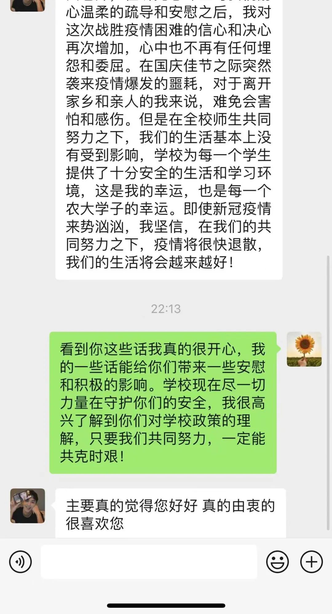 封校不封心,疫情防控给田原老师带来了不“疫”般的生活体验。她心中时刻牵挂着每一位同学,用一点一滴的小事诉说着大爱和担当,让员工们感受到了来自田原老师的关爱。