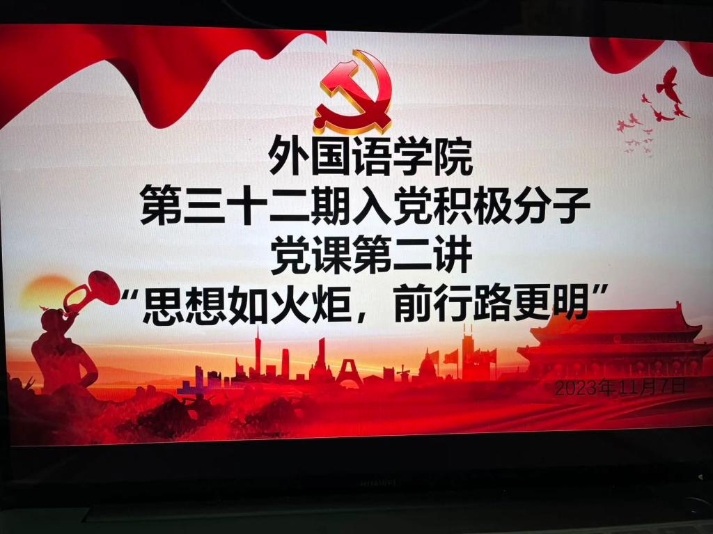 2023年11月7日19:00,于公司503召开了第三十二期入党积极分子第二次党课培训,此次党课的主题是“思想如火炬,前行路更明”。主要内容为:中国特色社会主义理论体系的发展。