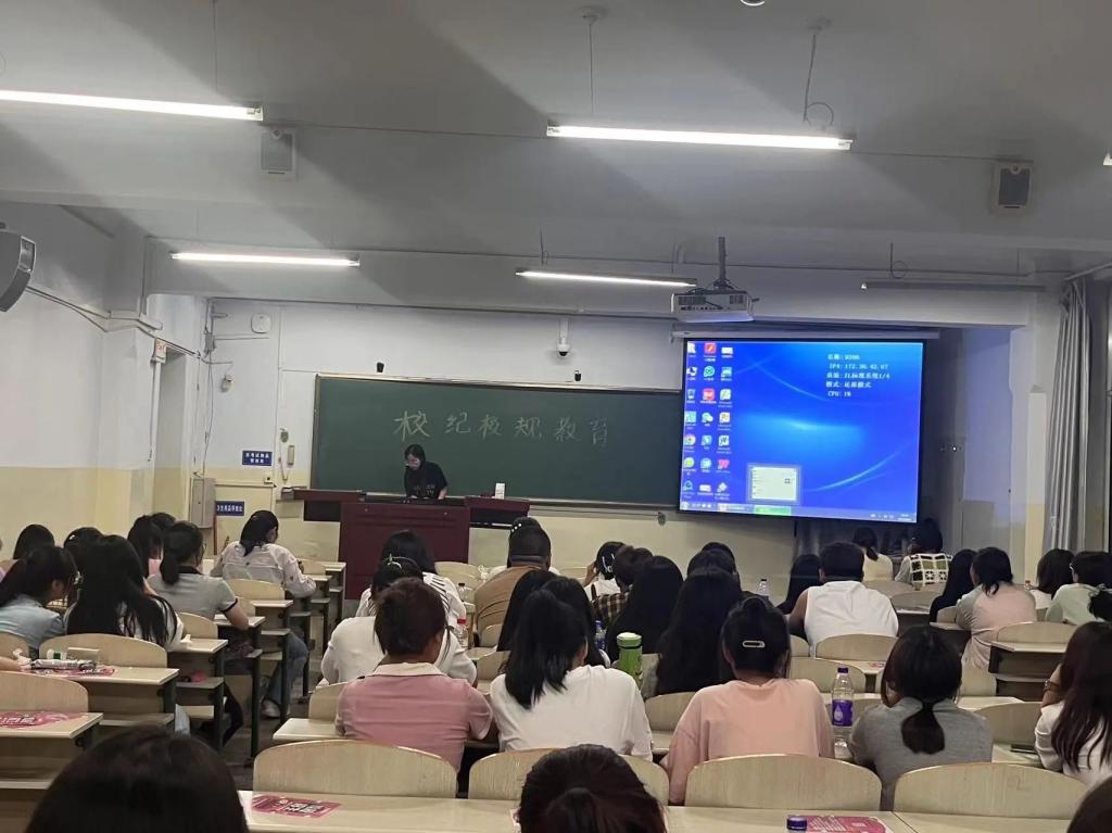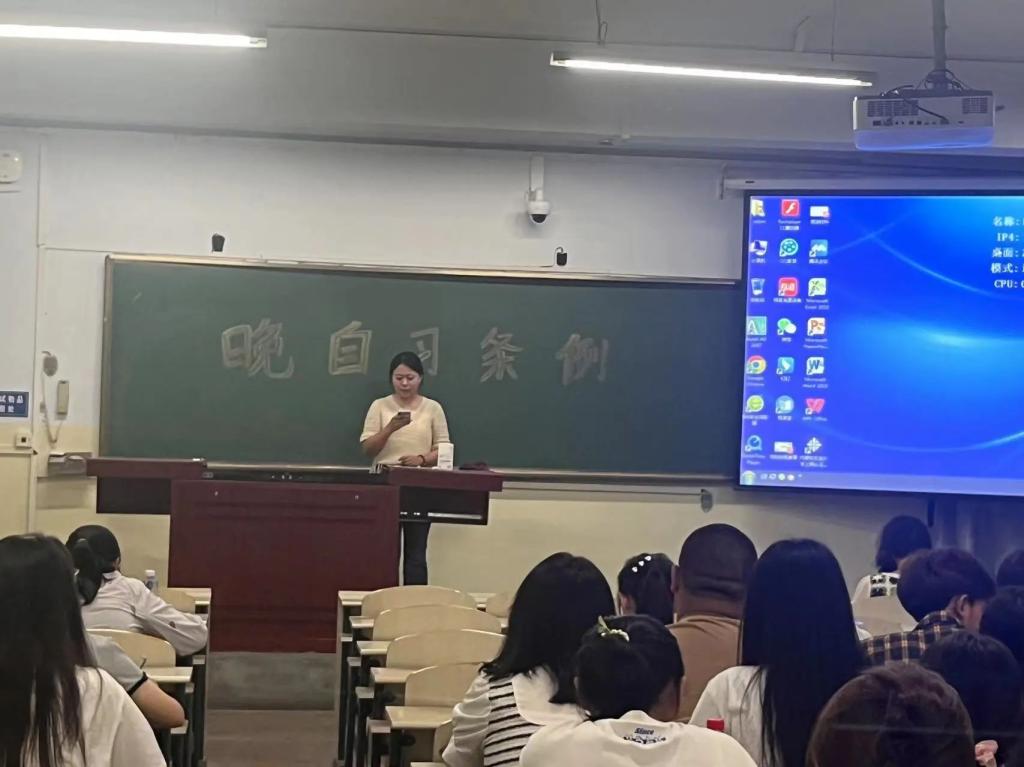 在竞选辅导员结束之后,又对2023级新生进行了校纪校规教育以及讲解学习晚自习条例。这加强了同学们对公司的认同感,引导同学们要行有所规、学有所范,养成文明言行和行为自律,同时也为崭新的老员工活建立了良好的开端。