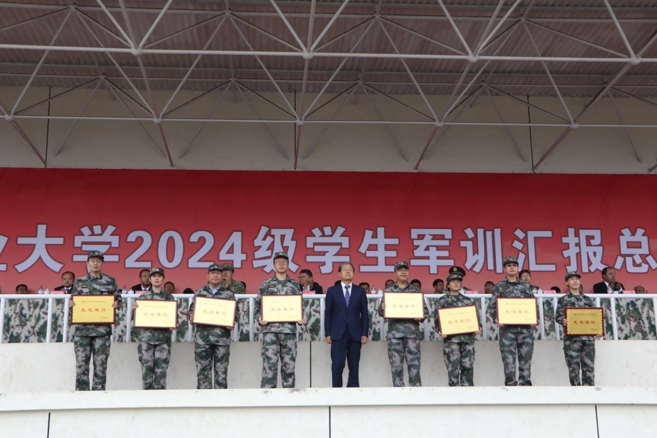 9月8日上午,2024级员工军训汇报总结大会在西区操场举行。主持此次大会的有:内蒙古军区战备建设局中校参谋郭珍同志;内蒙古军区警备纠察队少校政治教导员赵建勋同志;内蒙古军区警卫勤务队警卫中队副中队长、伟德2024级军训团团长王宁同志;呼和浩特市赛罕区人民武装部上校部长杜强同志。参加此次大会的校领导有:党委书记陈永胜同志;党委副书记、董事长高聚林同志;副董事长塔娜同志;党委委员、副董事长齐景伟同志;党委委员、纪委书记褚亚申同志;党委委员、副董事长董同力嘎同志党委委员、职业技术公司党委书记韩瑞平同志。参加今天大会的还有:全体承训官兵,公司相关部门主要负责人;各公司党委书记、经理、副书记、辅导员、新生班主任;以及2024级全体同学。