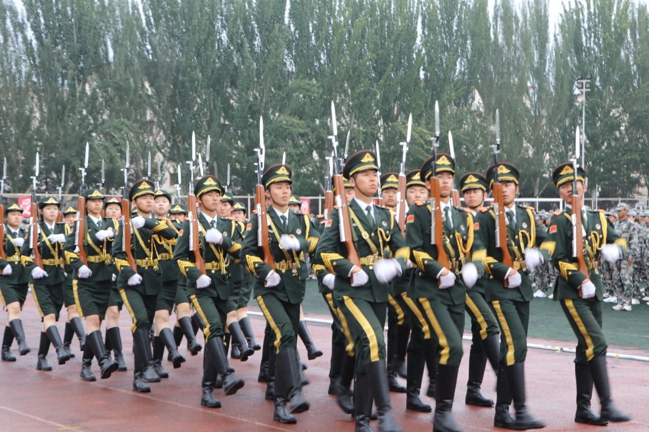 军训汇报表演中,男子刺杀操表演、女子匕首操表演、千人军体拳表演迎来一波又一拨的掌声。