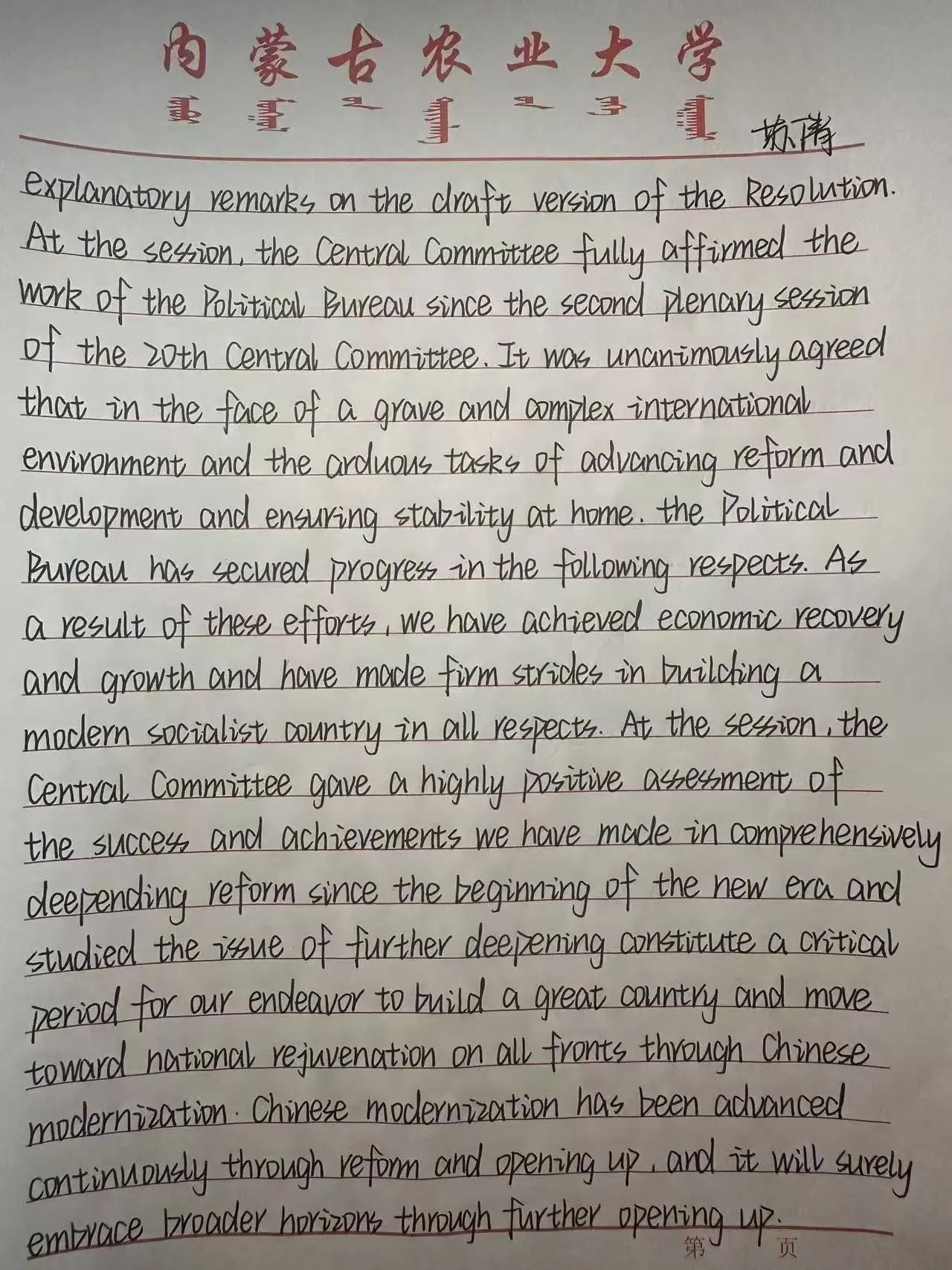 However, the reform will not be smooth sailing and will encounter various difficulties and obstacles. As the youth of the new era, we should deeply understand the spirit of the Third Plenary Session of the 20th Central Committee and actively participate in the wave of reform. Strive to learn new knowledge, improve their own ability, and contribute their wisdom and strength to the reform.