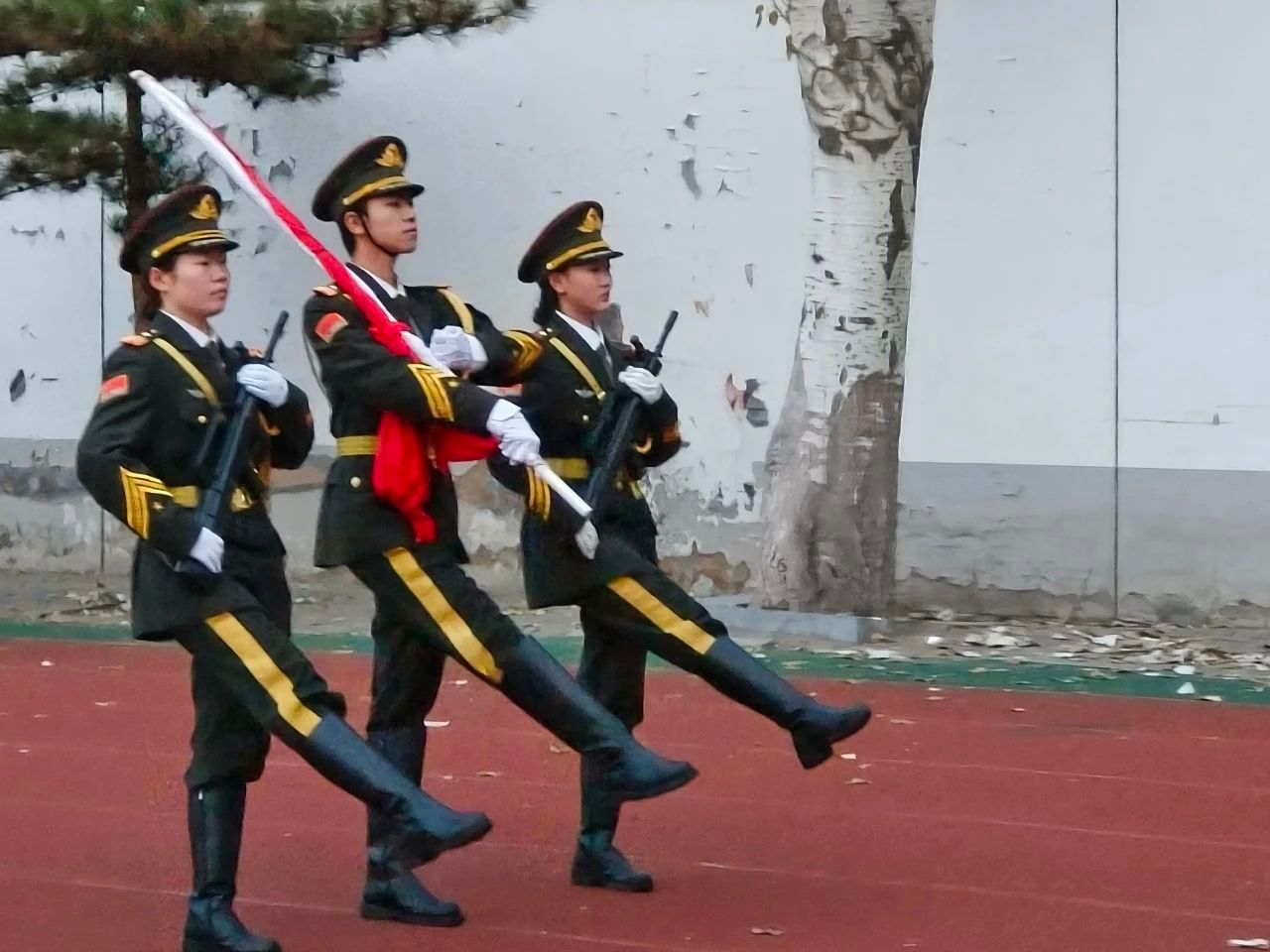 当清晨的第一缕阳光洒进操场,同学们有序进场。本次升旗仪式由周亚宁同学主持,在全体师生的注目下,国旗护卫队昂首阔步,动作整齐划一,随着国歌奏起,旗手有力拉动绳索,五星红旗冉冉升起,迎风飘扬,同学们肃立注目,心中充满敬畏与自豪。而后主持人宣读本次升旗仪式结束,同学们陆续退场。