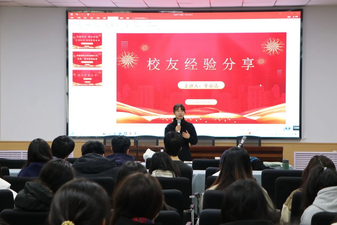员工李卓浩结合自己的求学经历,分享了自己在求学过程中的心得体会,鼓励同学们树立信心,勇敢追求自己的梦想。她以自己的留学经历为例,讲述了在国外求学的酸甜苦辣,并为有意出国深造的同学提供了宝贵建议。她强调,掌握专业知识的同时,也要注重培养自己的综合素质,提高跨文化交际能力。