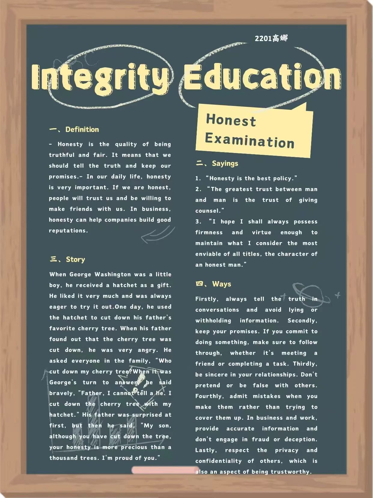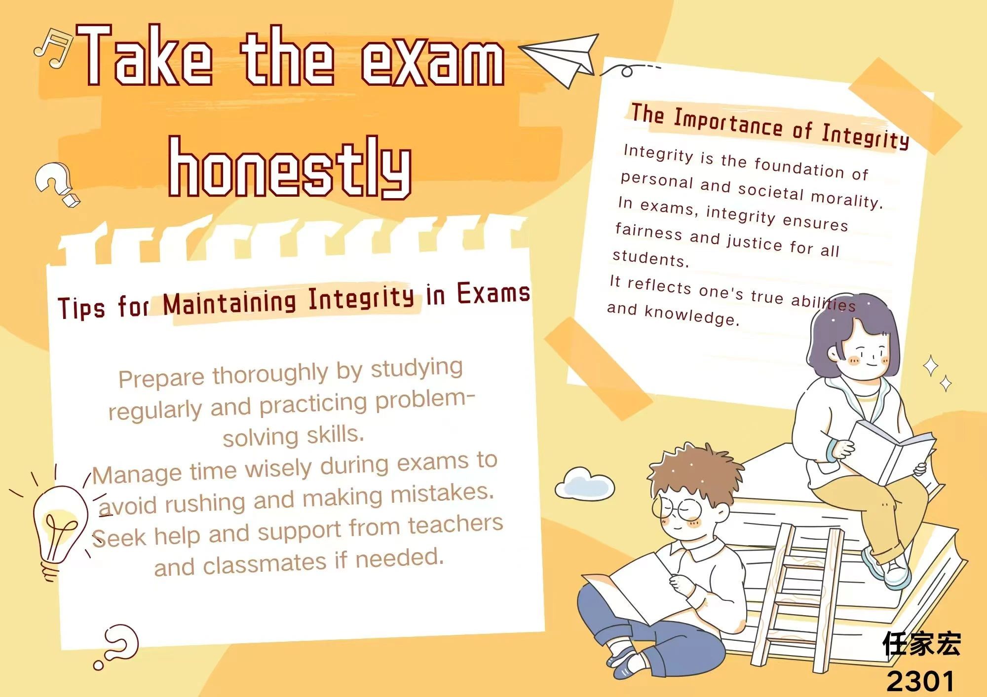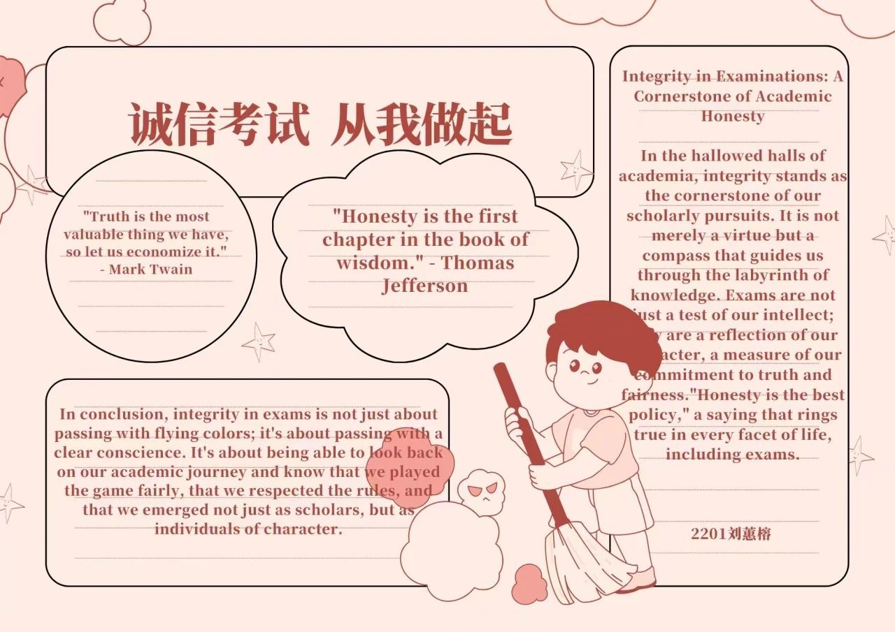 On the journey of learning, examinations undoubtedly serve as significant milestones. They not only test our mastery of knowledge but also constitute a trial of our moral character and integrity. Integrity in examinations signifies respecting our own learning outcomes and committing to our future life paths.
