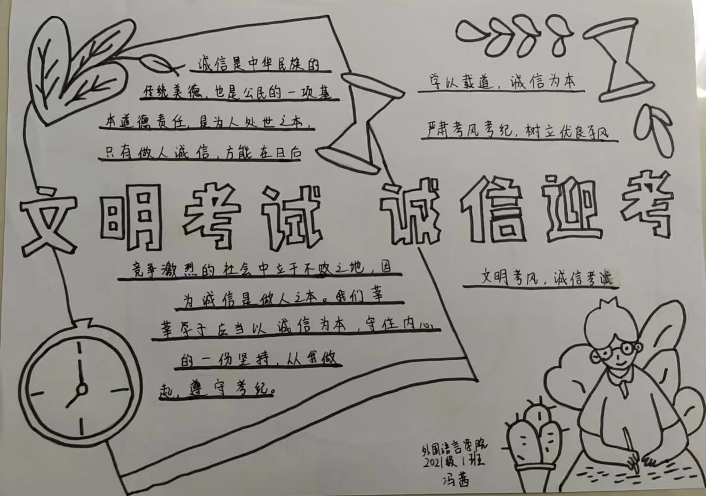 Integrity, a traditional virtue of the Chinese nation, is the foundation of being a person. In examinations, integrity implies refraining from cheating and plagiarism, and embracing challenges based on one's true abilities. This seemingly simple act carries profound significance. It reflects our reverence for knowledge, affirmation of self-worth, and aspirations for a bright future.