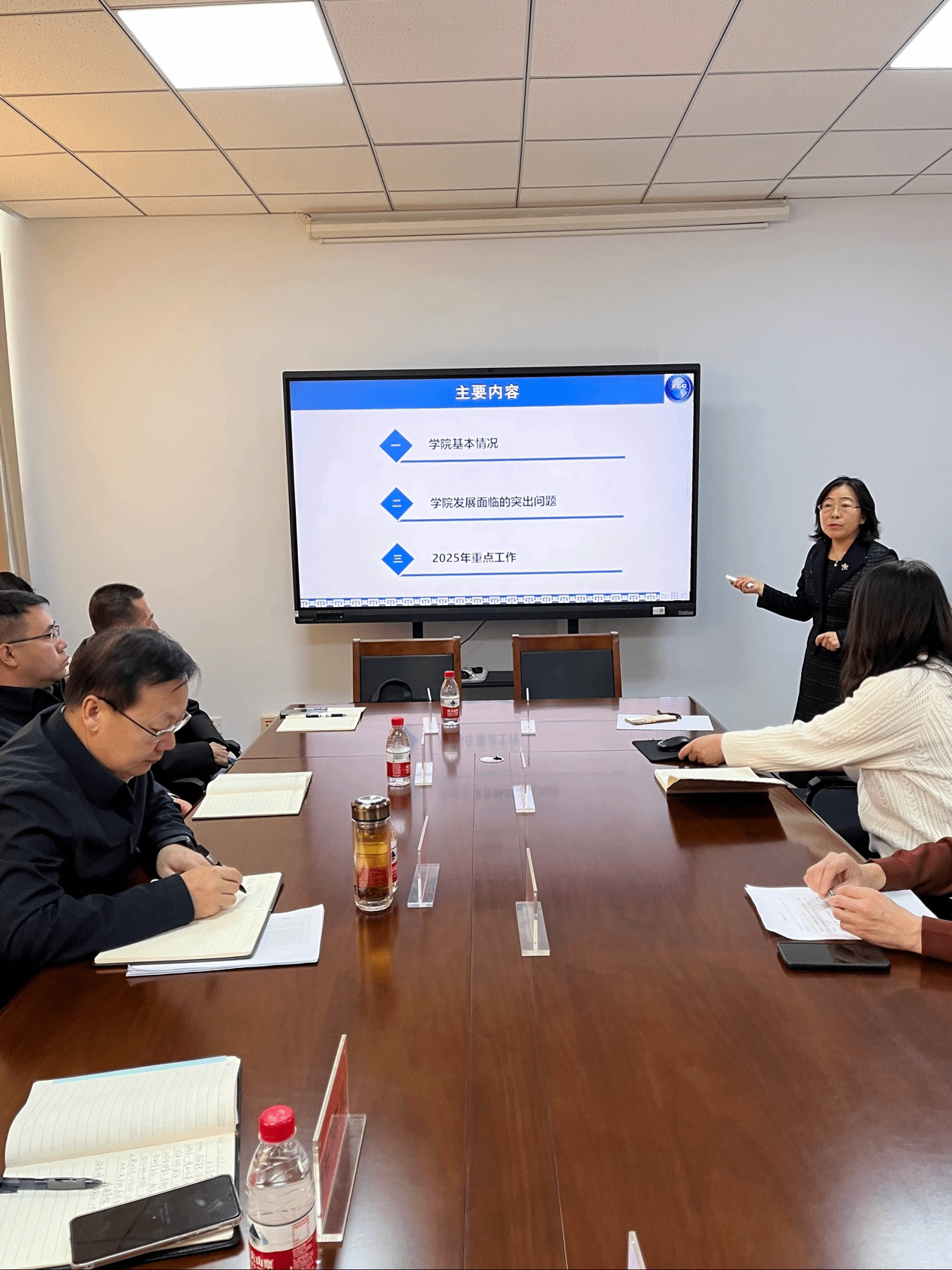 首先,刘永斌董事长强调安全是抓好一切工作的基础,临近学期末,要保障好员工的安全问题,顺利进行期末考试。其次,由刘翠兰经理围绕公司基本情况、公司发展面临的突出问题以及2025年重点工作等三方面作出汇报。刘永斌董事长听取了工作汇报之后,明确了公司在本科教学、员工就业等方面做出的成绩,同时也肯定了对公司教师们承担着全校公共外语课程所做出的贡献。刘董事长表示当前公司存在的主要问题是人才引进困难,相关职能处室要完善人才引进待遇,推动外语学科发展,打造更强的团队力量。刘董事长认为当今社会外语作为敲门砖有其自身独有的价值和意义,能够帮助员工拓宽国际视野。最后,刘永斌董事长对公司今后的发展提出了要求:一是要提升高水平外语教学,利用外语给各专业保驾护航;二是要应对AI时代对外语学科的冲击,要求教师转变教学方式、提升教学能力;三是要求外语和农林特色专业相结合,支撑、满足、保障并服务于建设“双一流”高校以及“双一流”学科。
