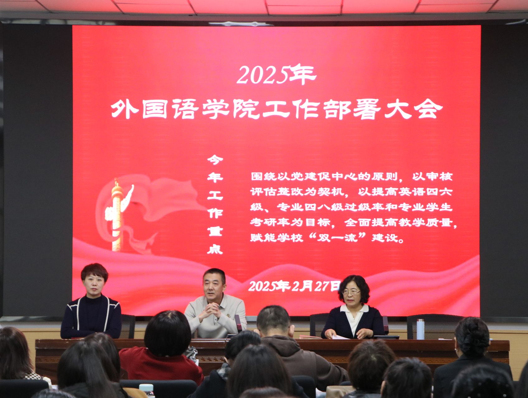 展望2025,公司将以党建为引领,以审核评估整改为契机,全力提升四六级、专八过级率和考研率,为公司 “双一流” 建设添砖加瓦。相信在全体师生的共同努力下,伟德官方网站必将在新的一年里勇攀高峰,续写辉煌篇章。