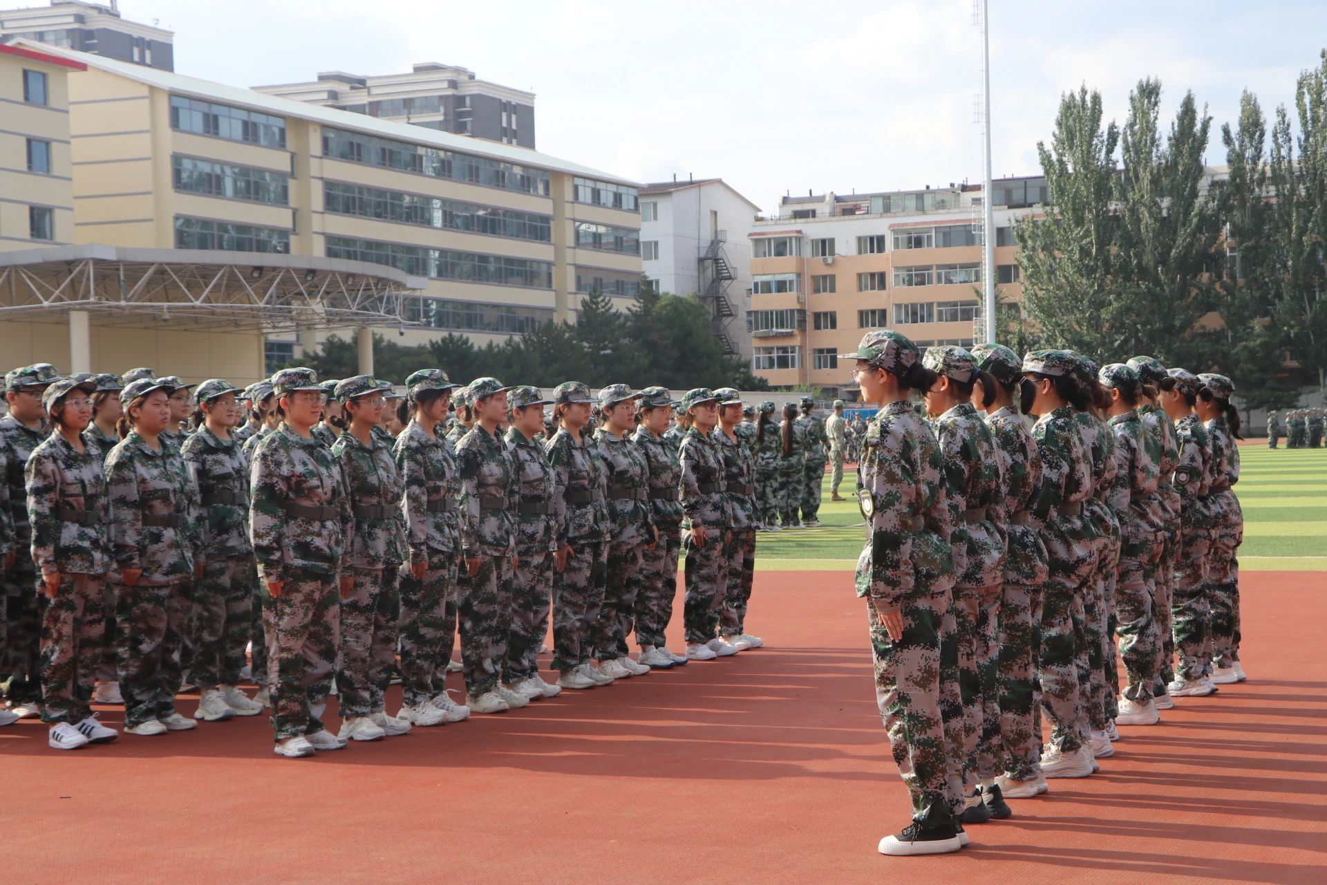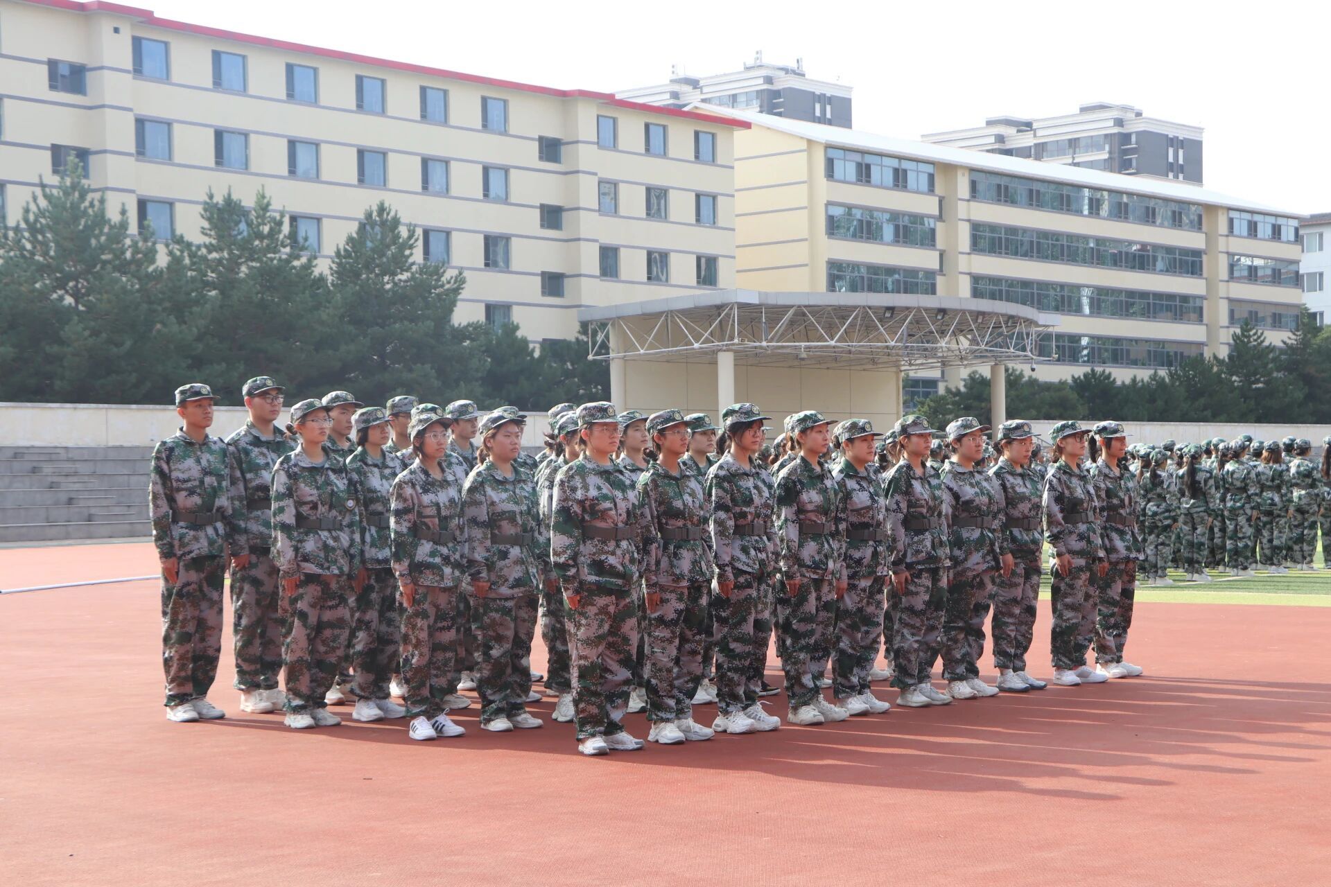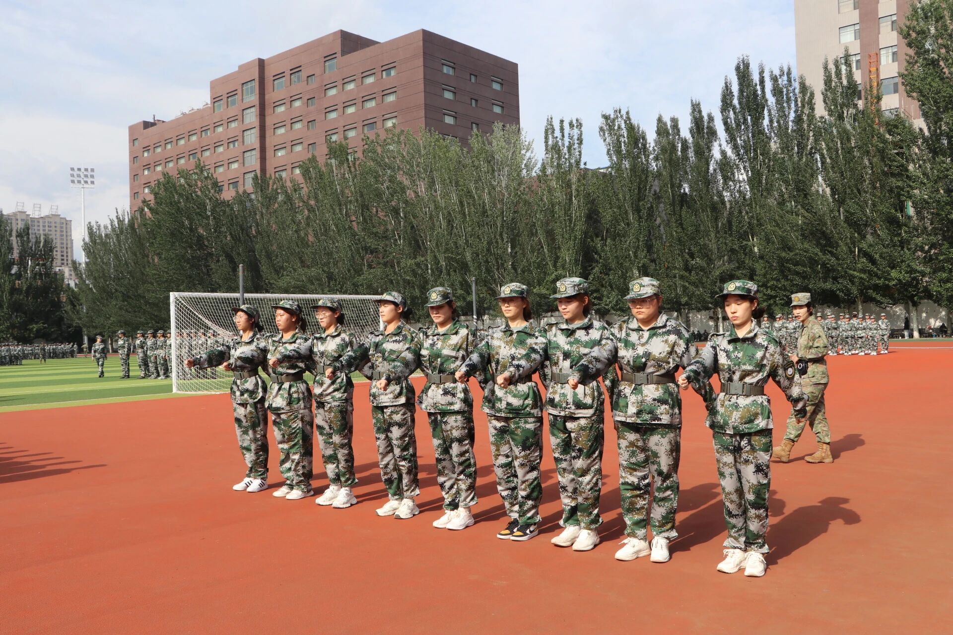 太阳逐渐上升到头顶,同学们开始练习齐步走,“一二一,一二一……”口号声回荡在操场上空,脚步声逐渐变得整齐划一。当整个连队第一次走出整齐的步伐时,疲惫的脸上都露出了欣慰的笑容。