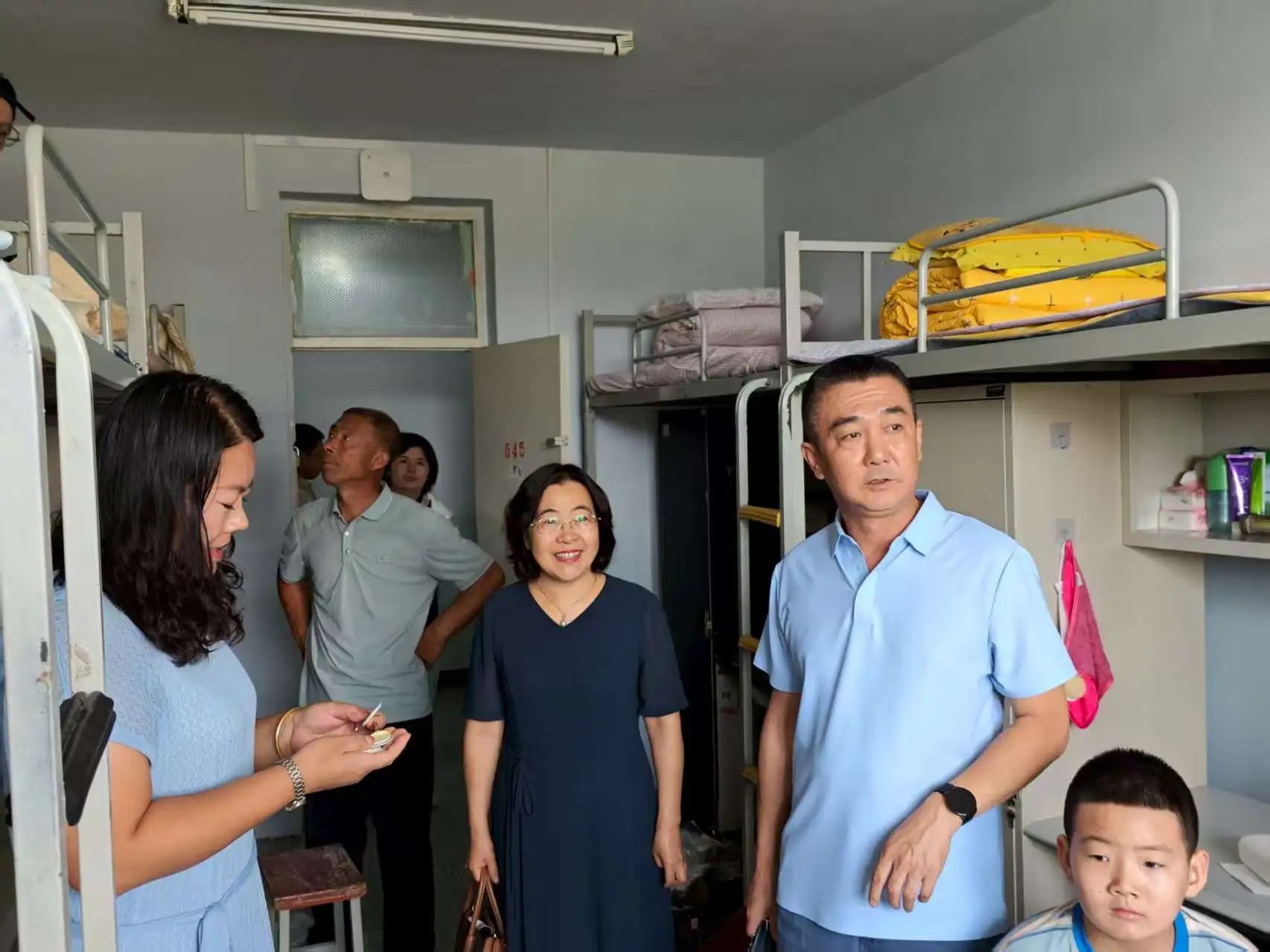 公司党委书记曹立军,经理刘翠兰来到公司迎新点,详细了解报到进度,慰问现场工作人员与志愿者。校领导也时刻关注报到动态,并为远道而来的新生送上暖心祝福。公司领导及辅导员深入新生公寓开展“暖心走访”,逐间走访刚安顿好的同学,查看住宿条件,亲切询问需求,让初来乍到的新生感受到公司大家庭的温暖。