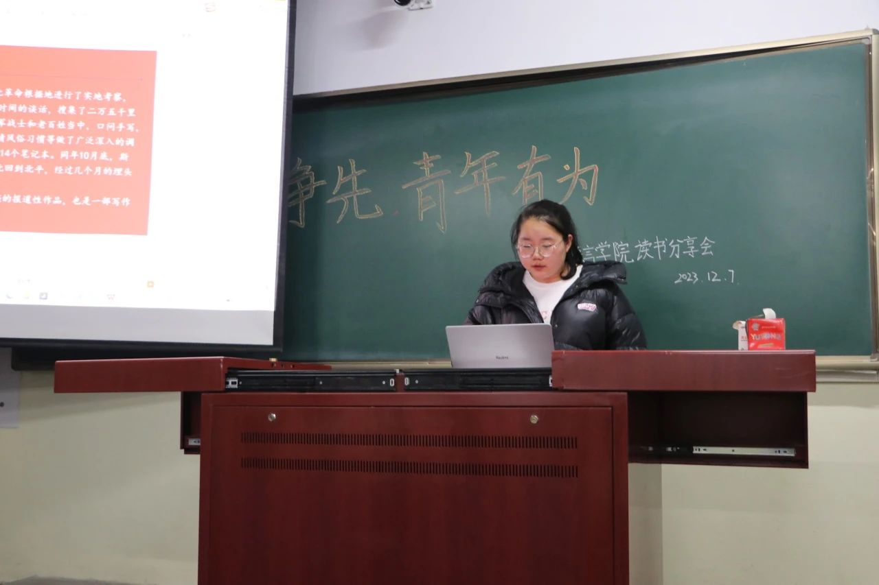 本次活动中十余位同学分享自己在阅读中的收获和感悟,或分享对近期阅读的一本书籍的理解和认识,亦或娓娓道来自己与阅读的结缘故事。在逻辑鲜明、形象生动的分享中,一本本图书变得更加立体鲜活,一段段发言变得更加引人入胜,精彩的分享让我们享受了一场读书的盛宴,也获得了一阵阵热烈的掌声。