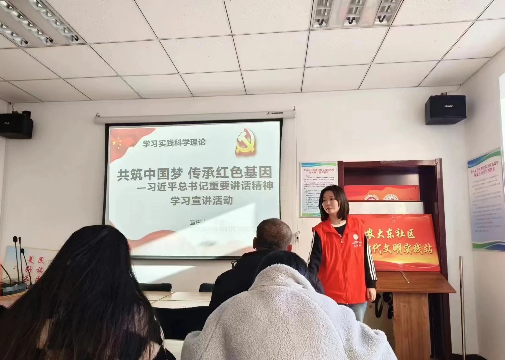 为进一步学习贯彻党的二十大精神,宪法精神,广泛践行社会主义核心价值观,以及坚定青年信念。12月8日上午,伟德官方网站团委联合农大东社区团支部新时代文明实践站举办“共筑中国梦,传承红色基因” 文明实践宣讲活动。