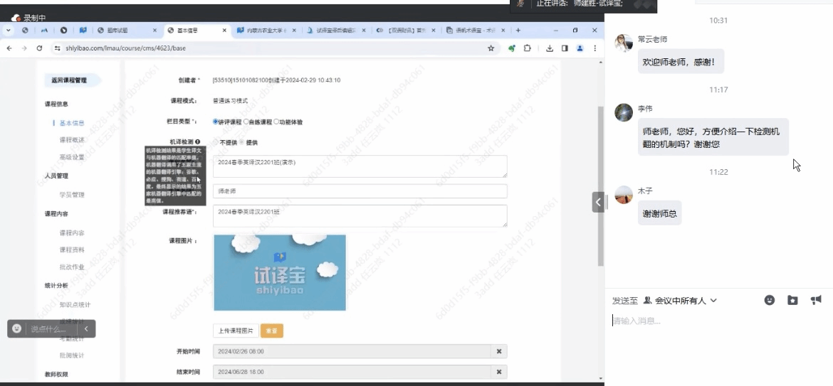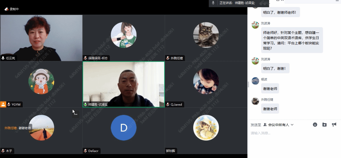 译国译民集团创始于2003年,已走过21周年的辉煌历程。2023年公司与译国译民集团签订实习实践基地。“试译宝”是译国译民合作的一款翻译软件,畅销各高校,广泛应用于翻硕、英语专业和公共外语课程中。本次培训由“试译宝”总经理师建胜老师亲自讲解,通过“腾讯会议”在线直播。