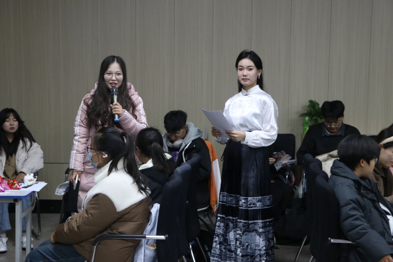 活动于晚上7:30准时开始,历时一个半小时。两位优秀的主持人精彩的开场白后,首先进入的是自由讨论环节,讨论的话题是"Should Chinese culture be inherited or innovated ?",话题在活动开始前已在网上发布,同学们认真准备,激烈讨论,全场的氛围活跃热闹,大家围绕话题展开英文交流,在互动交流中相互认识,擦出新的思维火花。接下来是表演环节,公司范琦曼、施明成等同学演唱了英文歌曲,精彩的表演使得现场气氛活跃,掌声不断。在“抢椅子”游戏中,同学们需要快速反应,根据主持人的描述迅速坐下,而在“逛三园”游戏中,紧扣主题,同学们每个小组派出一名同学,第一轮主持人问:"What are the traditional Chinese festivals?"第二轮以"What are the prefecture-level citys in China?"为题,第三轮是"What are the tourist attractions in China?"同学们轮流上台猜答案,锻炼了大家的口语表达能力并且加深了对中华文化的进一步了解。接下来是“找单词”和“猜词组词”,以 Confucius 等单词为谜底,同时也包含了诸多成语和俗语,同学们认真思考,举手抢答。在“猜诗”环节,主持人给出一首诗的英文,率先背出整首诗的中文的同学获得奖励;接着主持人给出一句俗语的英文,率先说出中文的同学获得奖励。这些生动有趣的活动也极大地考验了同学们的即兴口语表达能力。活动的最后,还发布了年轻人中流行的 MBTI 人格测试(简易版),同学们针对测试结果后进行了讨论。