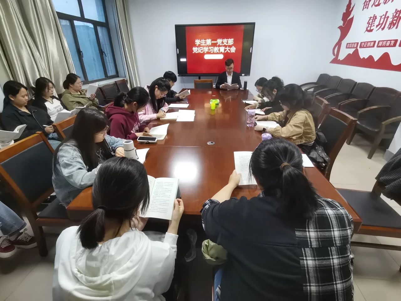 首先由主持人进行开场致辞,明确了会议的目的和重要性。紧接着,主持人通过带头领学和集中学习的方式,组织员工党员们原原本本、逐章逐条研读《中国共产党纪律处分条例》,加深对党纪的认识和理解。